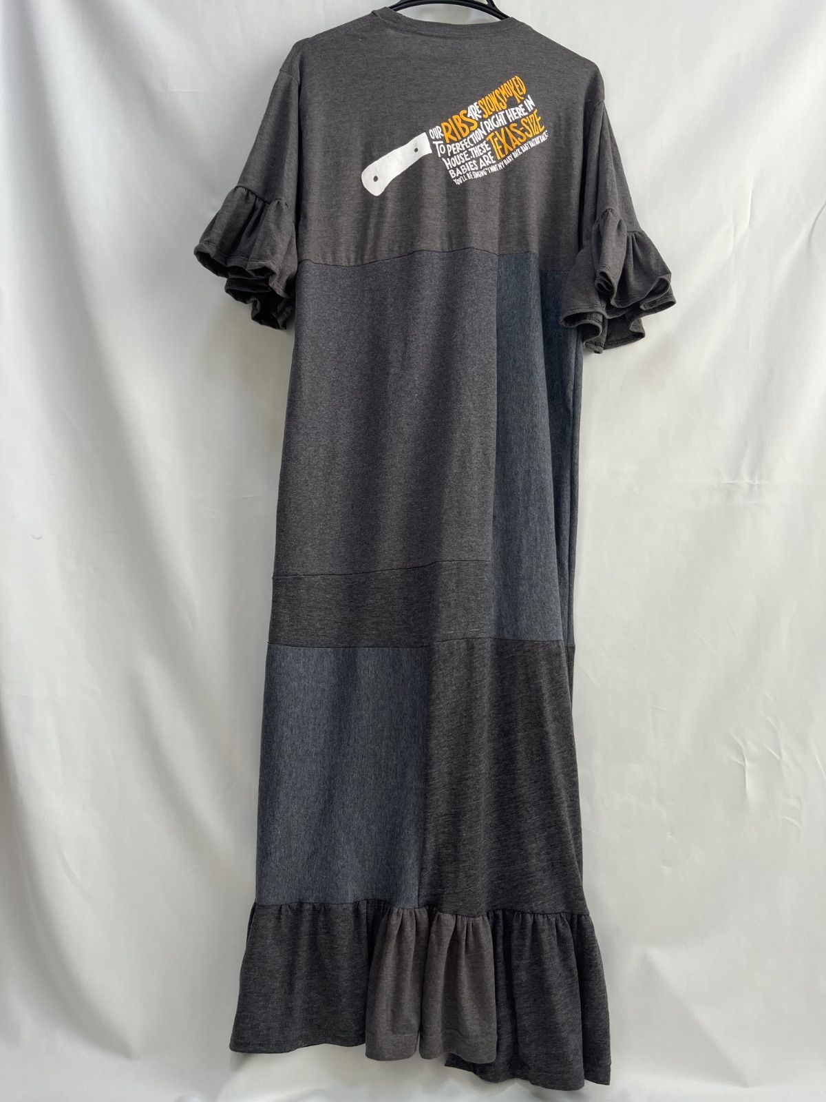 リメイク古着 remakeードッキングワンピース 半袖ロングワンピース ロゴT グレーの検索結果