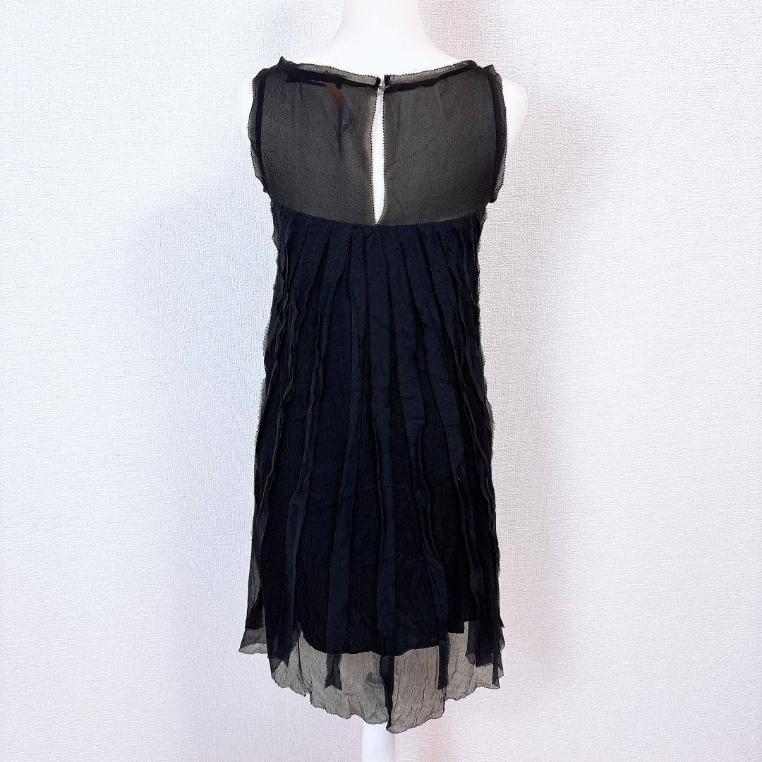 ヨーコチャン ノースリーブワンピース Vネック 裾フリル 36 無地