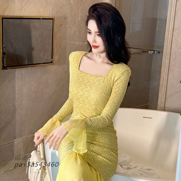 シースルーフリル長袖 ミモレ丈マーメイドドレスワンピース 黄 パーティー ドレス おしゃれ レディース 韓国 きれいめ pai5a543460の検索結果