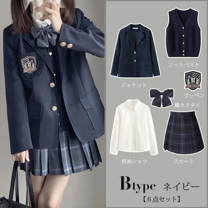スクールスーツ シャツ 女子高生 全20タイプ 長袖 5点セット カーディガン ネクタイ プリーツスカート 上下セット コスプレ ワッペン 学校制服WP人気注目919