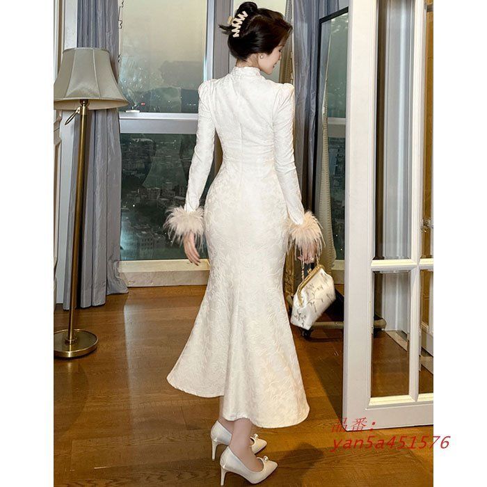 長袖裾ファー ロングタイトチャイナドレス風ワンピース 白 キャバ スナック パーティー 韓国 服 レディース セクシー yan5a451576 BLACKFEMALETHERAPIST_ORG