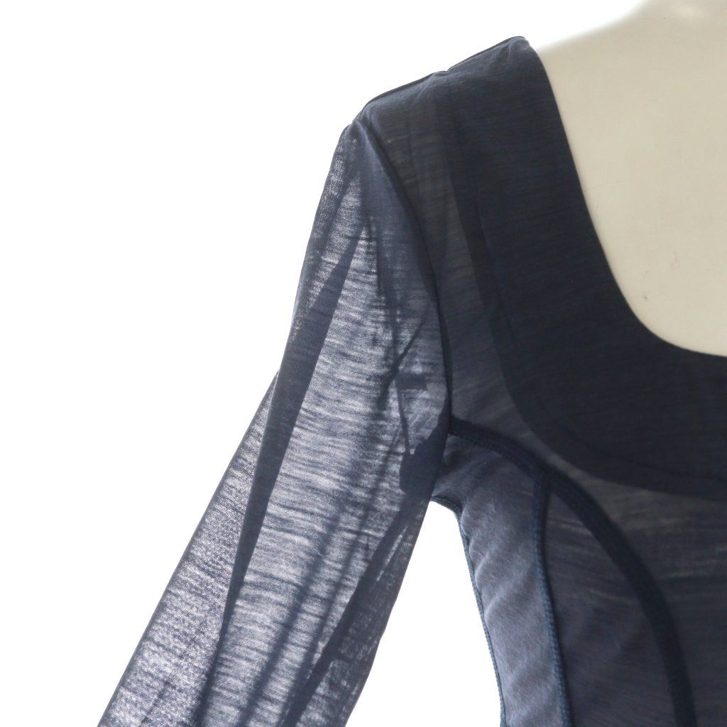 マメクロゴウチ Hybrid Yarn Wool Jersey Square Neck Dress ワンピース マキシ ロング 長袖 スクエアネック シアー シースルー 1 紺 ネイビー MM23FW-JS024 AN37 GY52 BLACKFEMALETHERAPIST_ORG