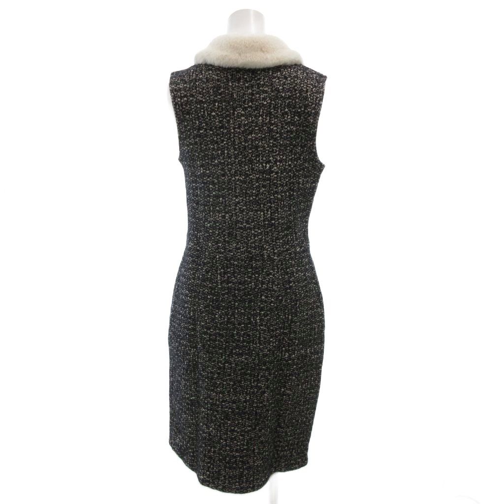 アニエスベー agnes b. 2WAY ワンピース ひざ丈 ノースリーブ 2 黒 ブラック 白 ホワイト ツイード ファー JS GY14 BLACKFEMALETHERAPIST_ORG