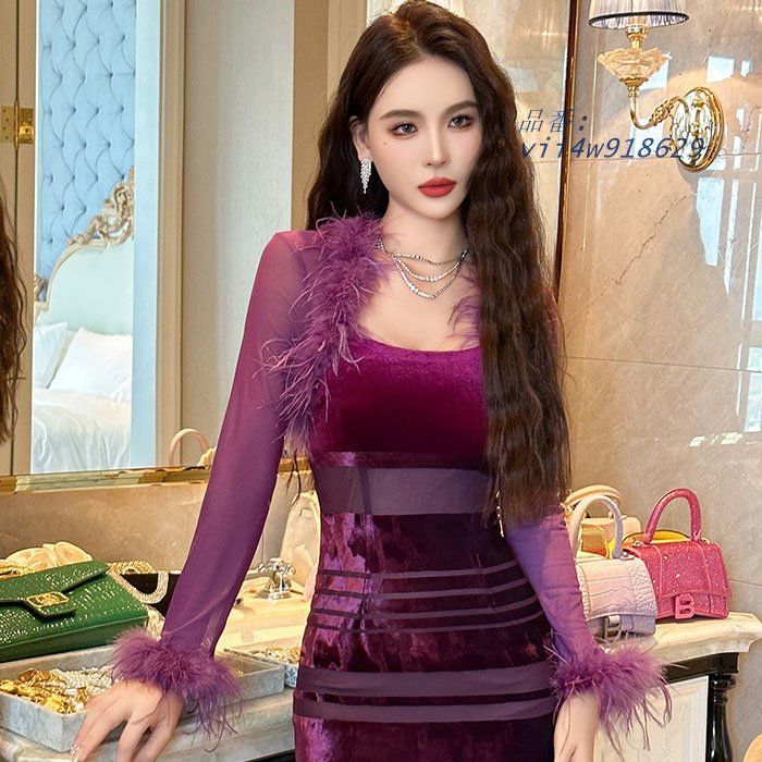 ファー付きシースルー長袖 膝丈タイトドレスワンピース 紫 セクシー ドレス キャバ スナック 服 韓国 vii4w918629の検索結果