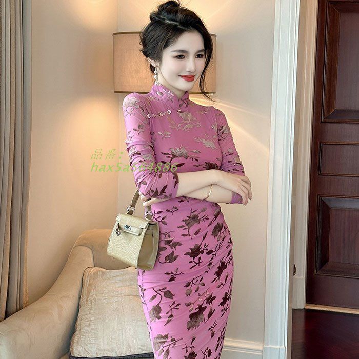 マオチャイナドレス 長袖ミモレ丈タイトワンピース ピンク セクシー レディース キャバ スナック パーティー 韓国 服 hax5a564886の検索結果