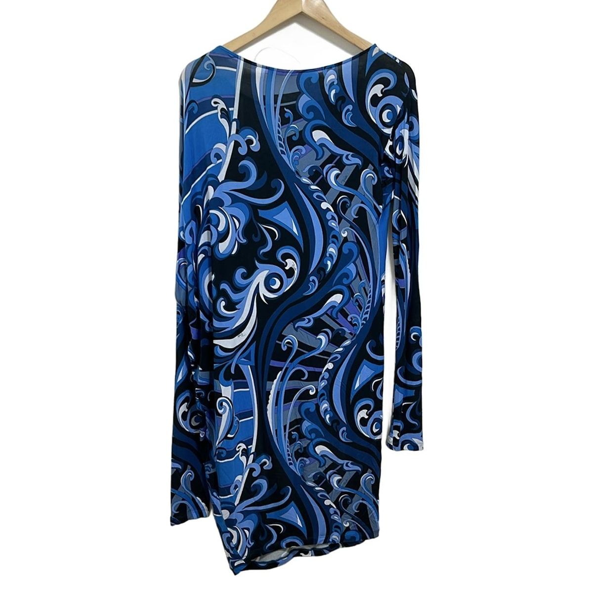 EMILIO PUCCI PUCCI エミリオプッチ ワンピース サイズ42 M レディース - 黒×ブルー×マルチ クルーネック 長袖 ひざ丈 BLACKFEMALETHERAPIST_ORG