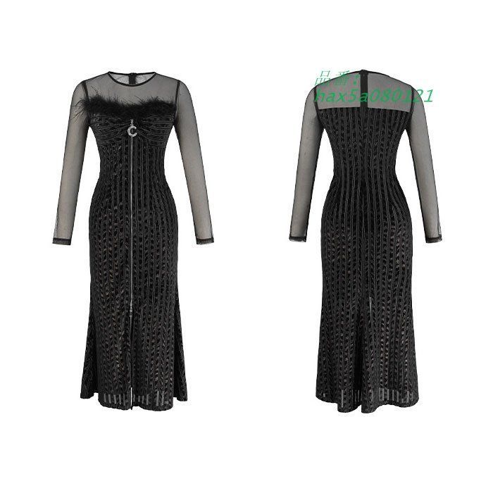 胸元ファー使い シースルー長袖ロングタイトドレスワンピース 黒 パーティー キャバ スナック セクシー 服装 韓国 ドレス hax5a080121の検索結果