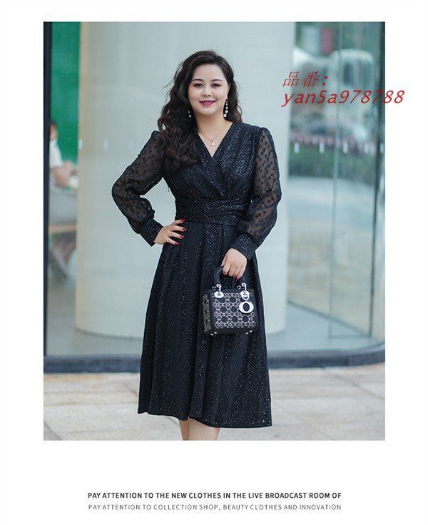 ワンピース ぽっちゃり ドレス ミモレ丈 袖あり 長袖 きれいめ パーティードレス 大きいサイズ レディース Aライン ワンピ 秋 春 Vネック yan5a978788 BLACKFEMALETHERAPIST_ORG