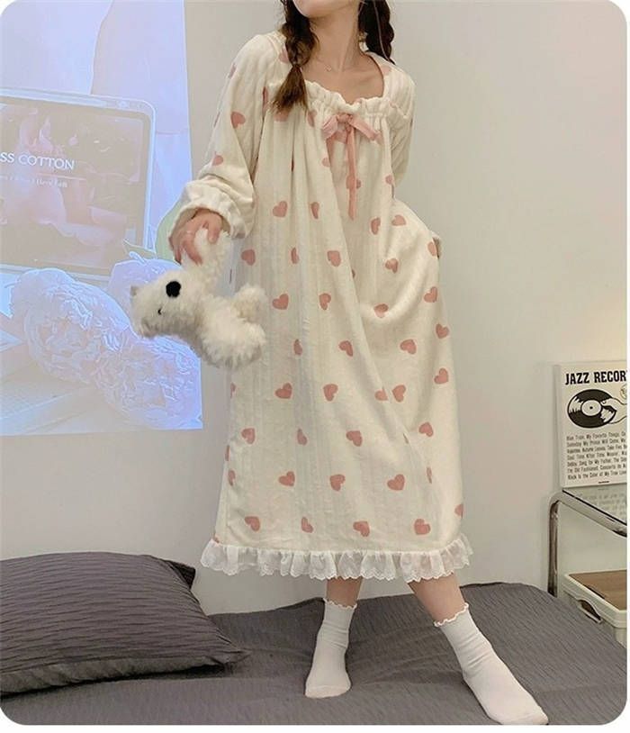 ナイトガウン レディース ルームワンピース 長袖 ロングワンピ パジャマ フランネル 秋冬 ハート柄 暖かい 寝巻き モコモコ 部屋着 保温 柔らかいXZ0524の検索結果