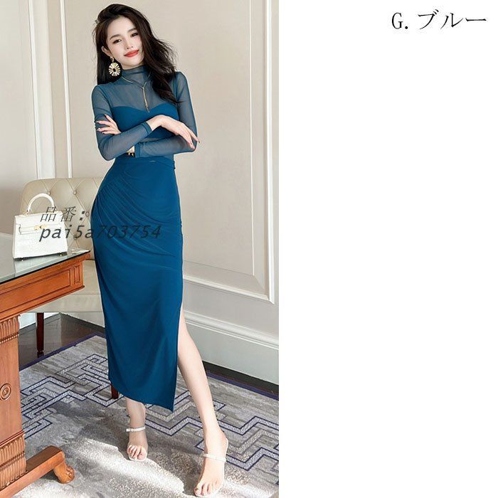 シースルー長袖 深スリット入りロングドレスワンピース 黒 赤 青 セクシー 韓国 パーティー スナック キャバ pai5a703754の検索結果