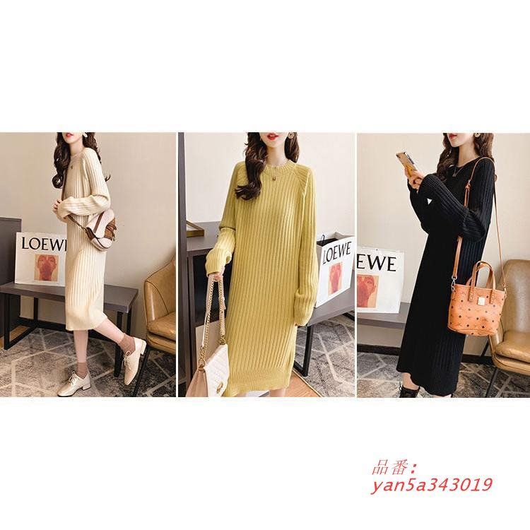 ニットワンピース レディース 無地 クルーネック プルオーバー ロングセーター 秋冬 モダン プリント 膝下 ファッション 厚手 無地 ゆったり 長袖 yan5a343019 BLACKFEMALETHERAPIST_ORG