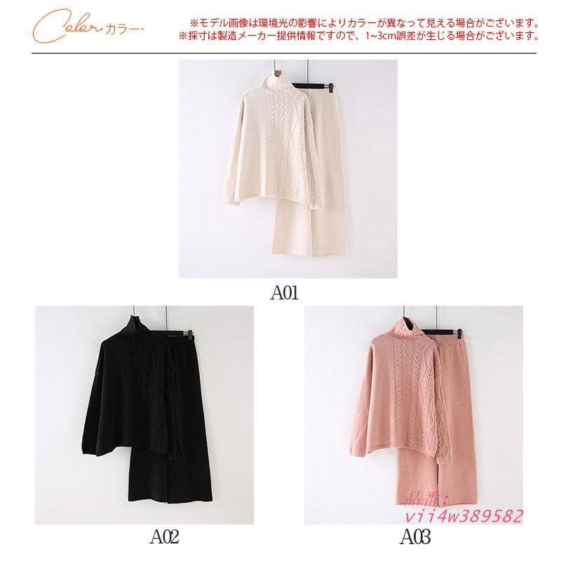 セットアップ レディース ニット 秋冬 ニット ハイネック カジュアル 部屋着 ワイドパンツ 長袖 ゆったり 上下セット セーター vii4w389582 BLACKFEMALETHERAPIST_ORG