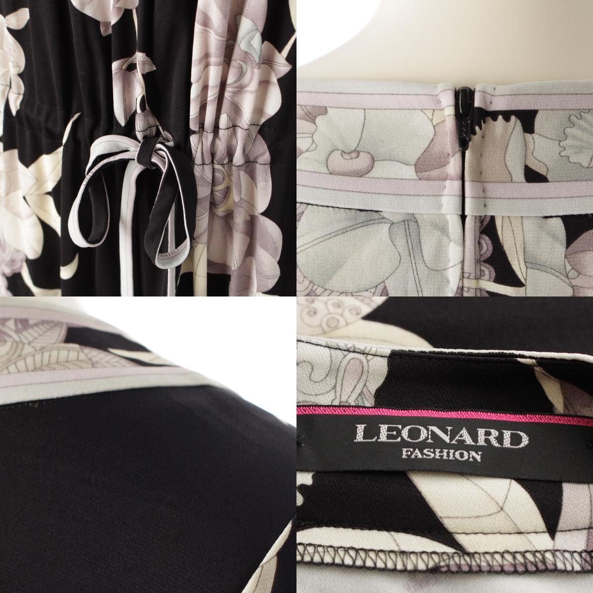 レオナール アセテート×ポリエステル カンカン ドローコード フラワー 花柄 総柄 ワンピース 0140203 ブラック グレー 38 BLACKFEMALETHERAPIST_ORG