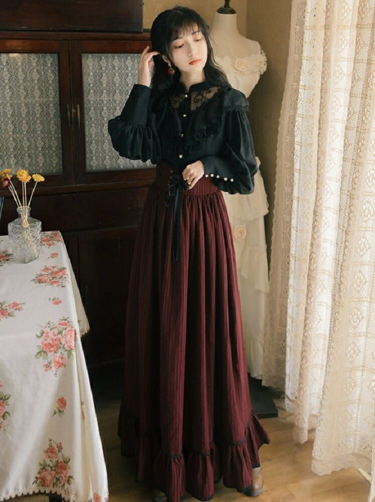 ドレス ボルドー ロングスカート ブラックレーストップス 上下セット ゴシックの検索結果