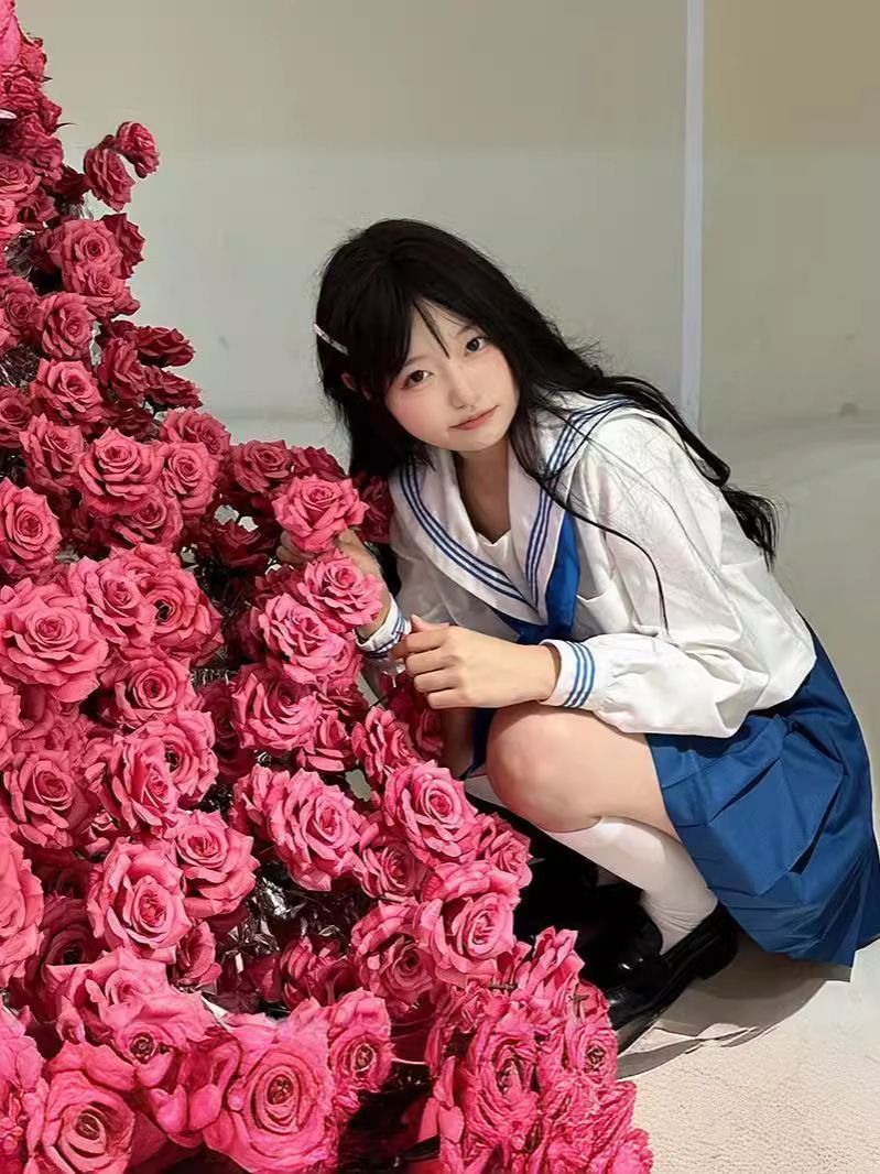 セーラー服 コスプレ レディース イベント女子 清純派 リボン付き バレンタイン 制服 コスプレ 学生服 仮装 セーラー服 長袖 上下セット JK制服 女子高校生 学園祭 大人 コスチューム衣装 撮影 ステージ 衣装 yunrui22