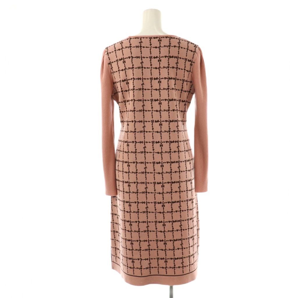 エムズグレイシー M S GRACY リボン付きチェック柄ニットワンピース 膝丈 長袖 38 ピンク AT OSの検索結果