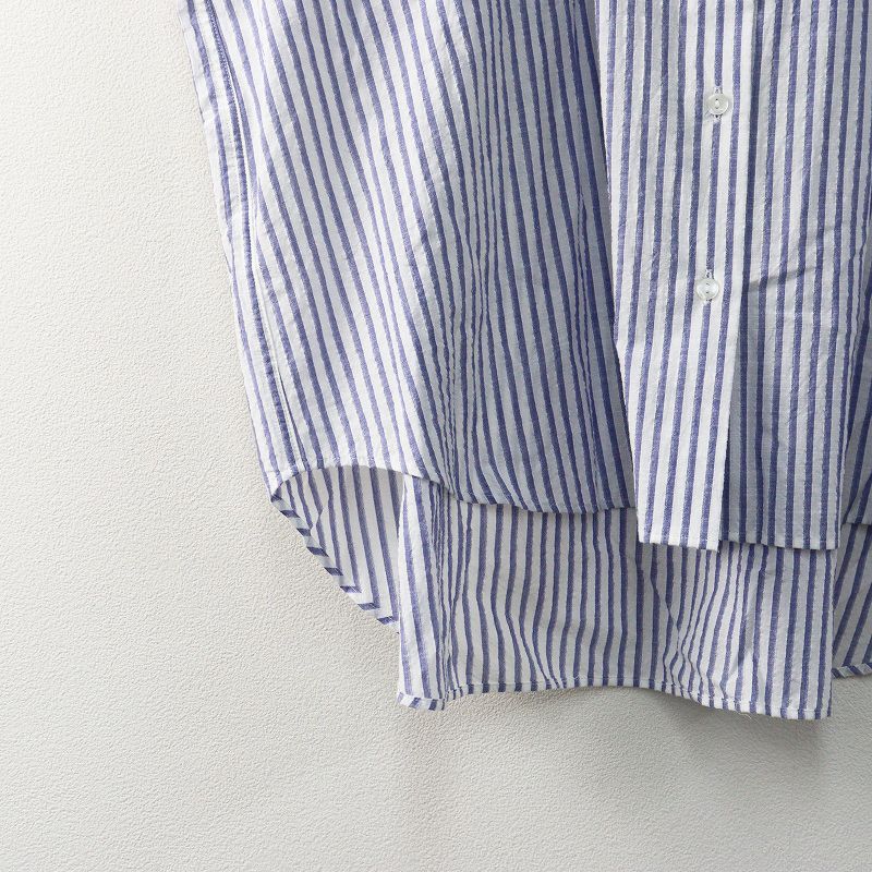 ♥ ハウス HUIS 遠州織物 U103 空羽コードレーンフレンチスリーブワイドブラウス F‖ブルー×ホワイト トップス 2400014675719 BLACKFEMALETHERAPIST_ORG