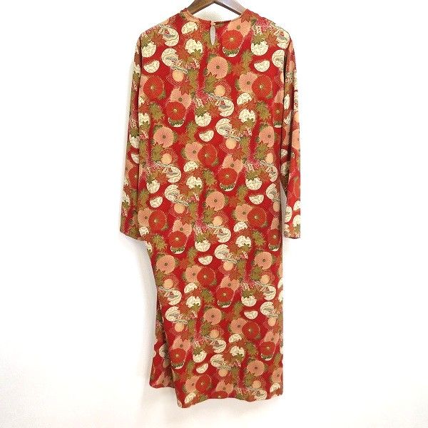 au ワンダフルワールド WONDERFUL WORLD カネコイサオ ロング ワンピース 赤 和柄 菊柄 ちりめん 縮緬 1998年 ヴィンテージ 970694 k01 BLACKFEMALETHERAPIST_ORG