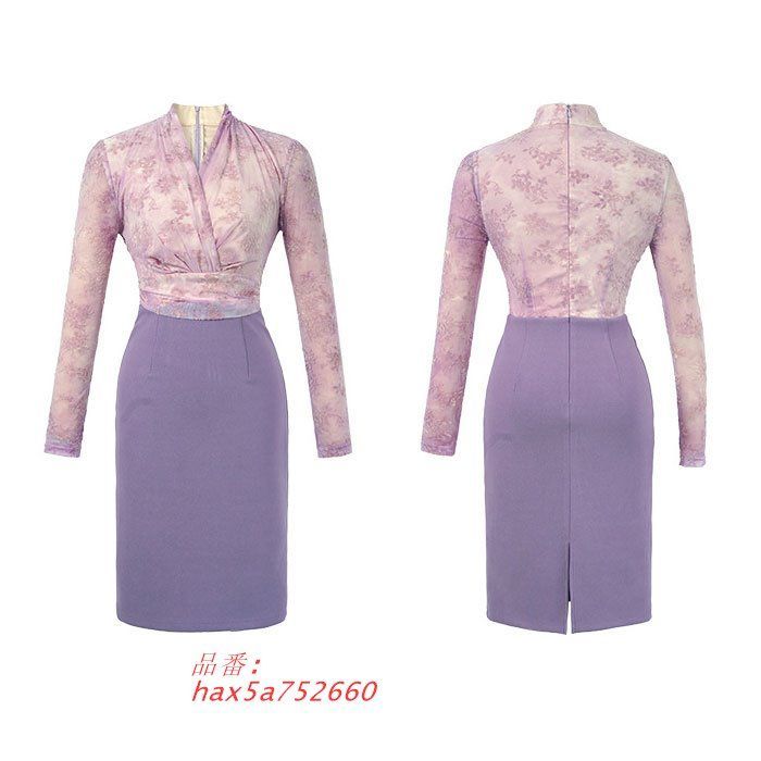 ハイウエスト切り替え カシュクールVネック長袖膝丈タイトワンピース 紫 キャバ スナック ラウンジ 服 韓国 レディース hax5a752660 BLACKFEMALETHERAPIST_ORG