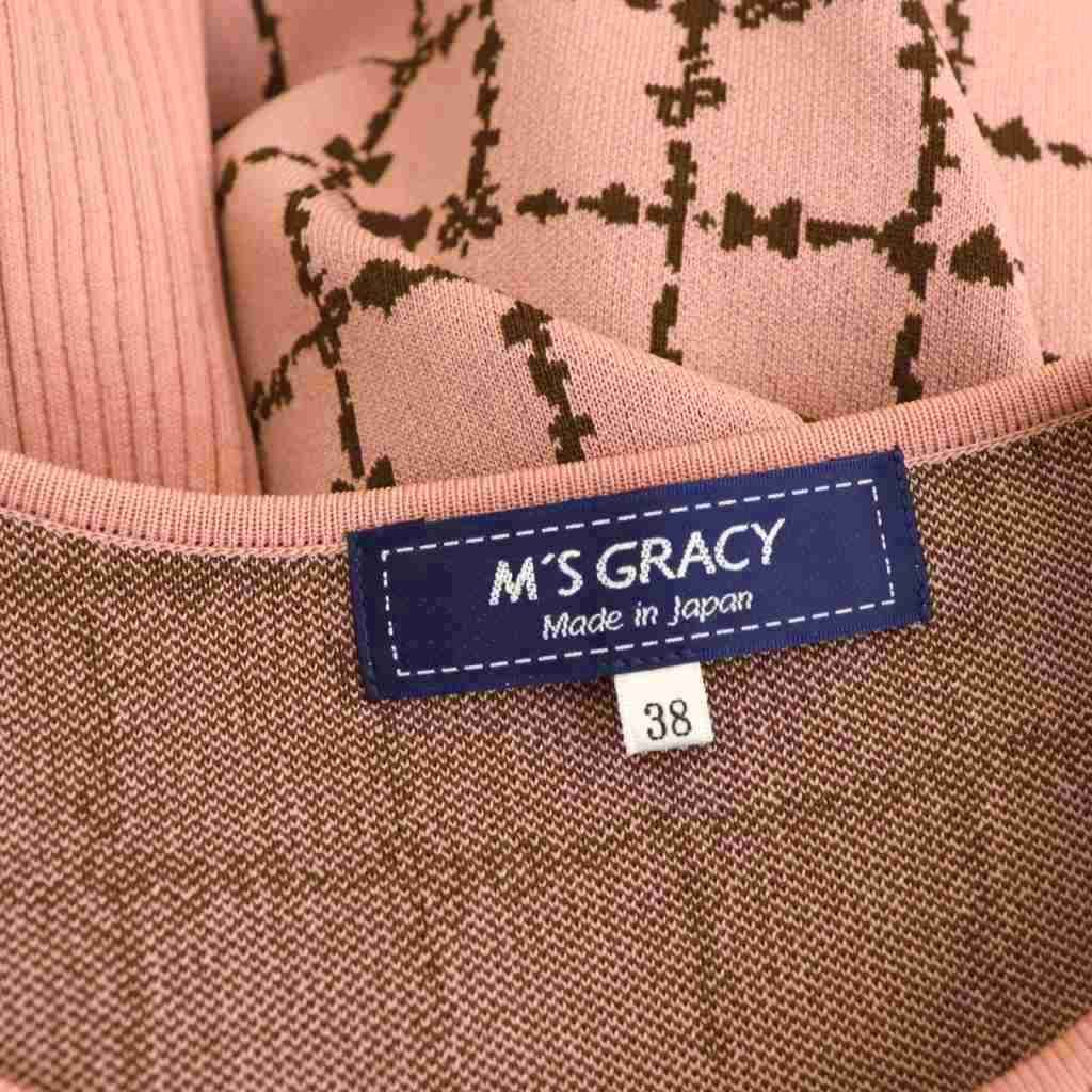 エムズグレイシー M S GRACY リボン付きチェック柄ニットワンピース 膝丈 長袖 38 ピンク AT OSの検索結果
