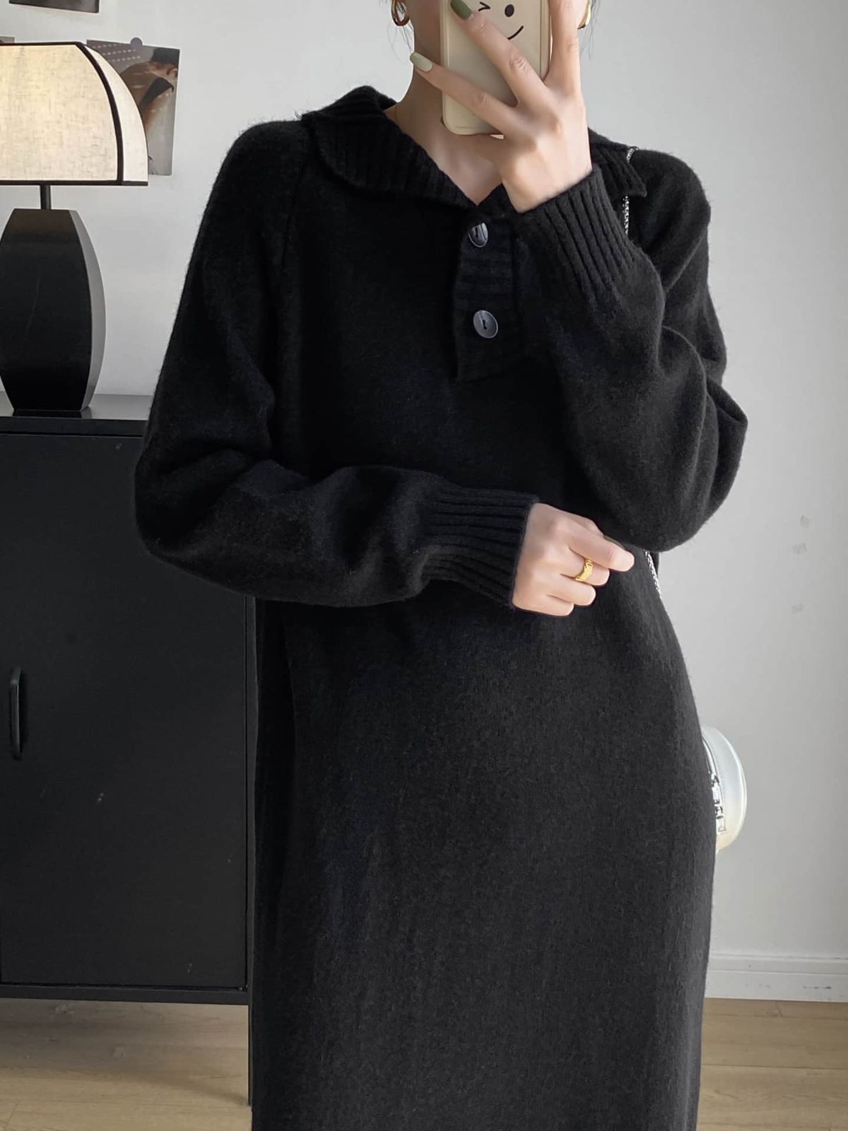 ロングニットワンピース 秋冬 即 OK ニットワンピース Aライン ハイネック ボタン 厚手 暖かい 保温 防寒服 ゆったり 体型カバー 長袖 上品 きれいめ シンプル 体型カバー 無地 伸縮性 洗える ルームgelitai13 BLACKFEMALETHERAPIST_ORG