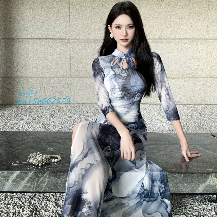 胸元開き深スリット チャイナドレス風五分袖タイトロングワンピース キャバ スナック ラウンジ レディース セクシー 韓国 pai5a662579 BLACKFEMALETHERAPIST_ORG