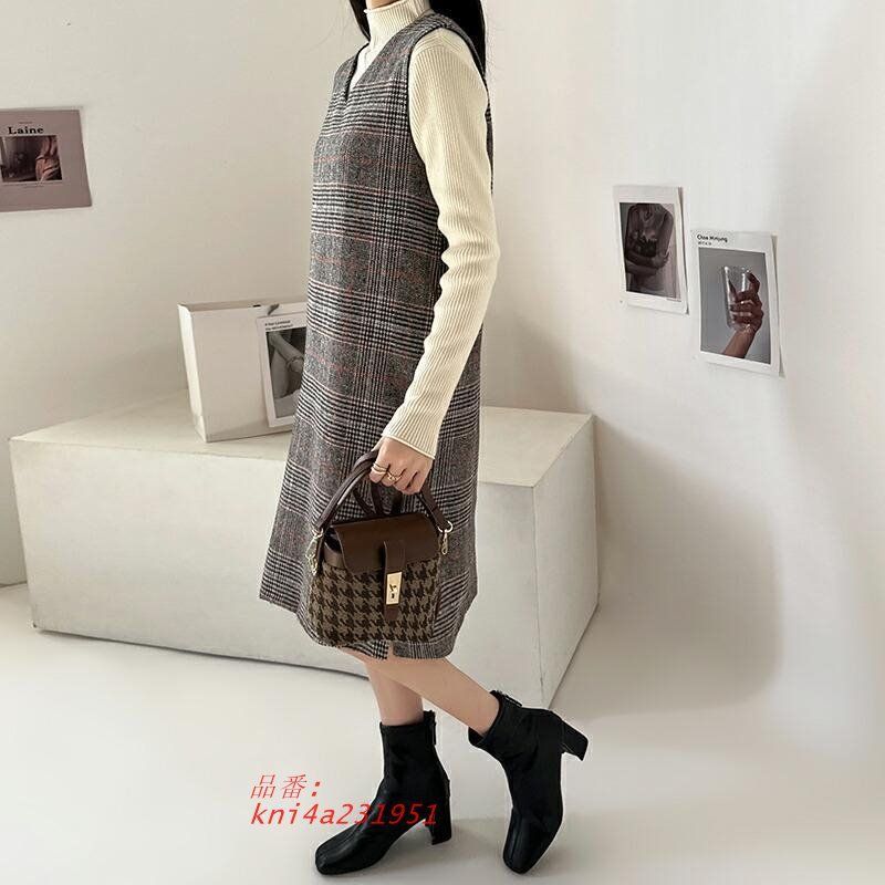 ジャンパースカート Vネック 大人 ジャンスカ レディース ジャンスカワンピース ワンピース ロング スカート チェック柄 選べる長さ ミディアム きれいめ 韓国 kni4a231951 BLACKFEMALETHERAPIST_ORG