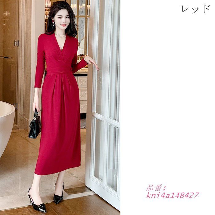 深Vネックウエストリボン絞り 長袖ロングタイトニットワンピース 黒 赤 タイトニット ニットワンピース おしゃれ レディース 韓国 kni4a148427の検索結果