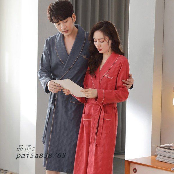 ペアパジャマ ガウン 春 秋 ルームウェア メンズ 寝間着 カップル 部屋着 韓国風 結婚祝い プレゼント おしゃれ ナイトウェア パジャマ ギフト pai5a838768 BLACKFEMALETHERAPIST_ORG