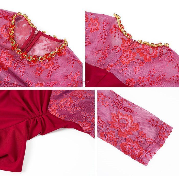 トップシースルーレース 長袖ロングフリルワンピース 赤 キャバ スナック パーティー ドレス 服 韓国 レディース pai5a567327 BLACKFEMALETHERAPIST_ORG