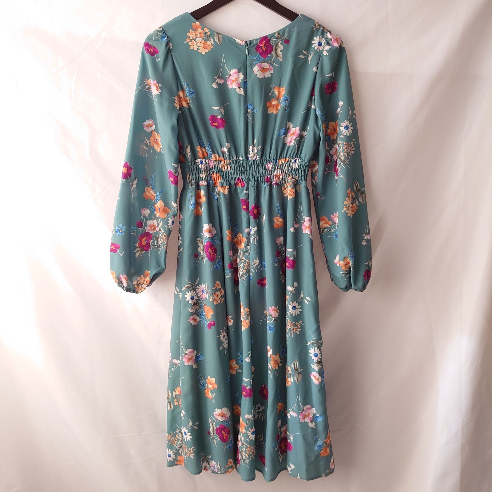アンドクチュール And Couture 38 グリーン花柄長袖マキシワンピース BLACKFEMALETHERAPIST_ORG