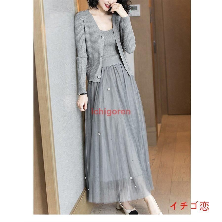 ワンピース 秋物 レディース セットアップ 3点セット ニット 40代 春 カーディガン チュール 膝丈 きれいめ 長袖 通勤 お出かけ 着痩せ 結婚式ドレスの検索結果