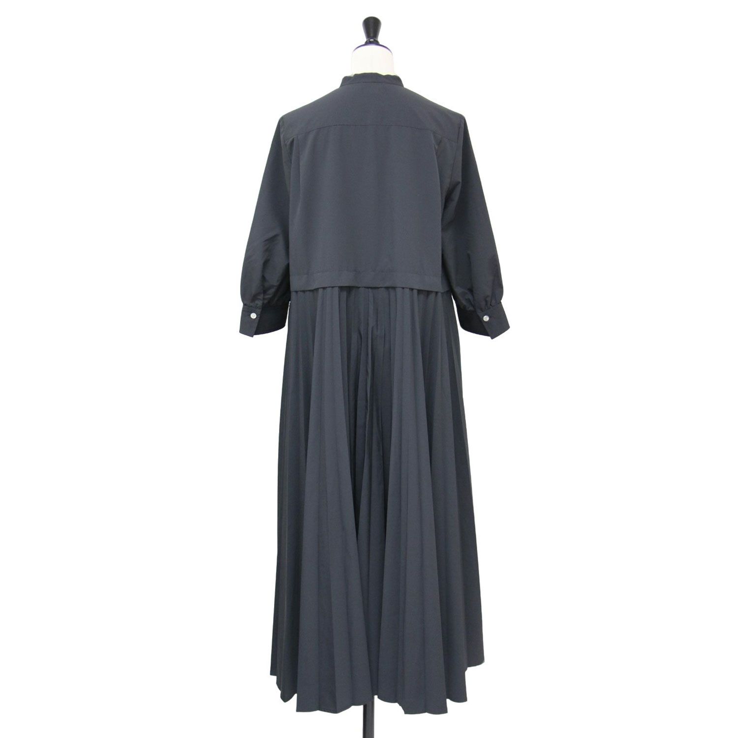Ballsey ボールジー ワンピース グレー サイズ 36 9号 23秋冬 スパンブロード バックプリーツ シャツワンピース 7分袖 ノー ロング丈 ギャザー フ Aライン トップス ドレス 羽織り レディース BLACKFEMALETHERAPIST_ORG