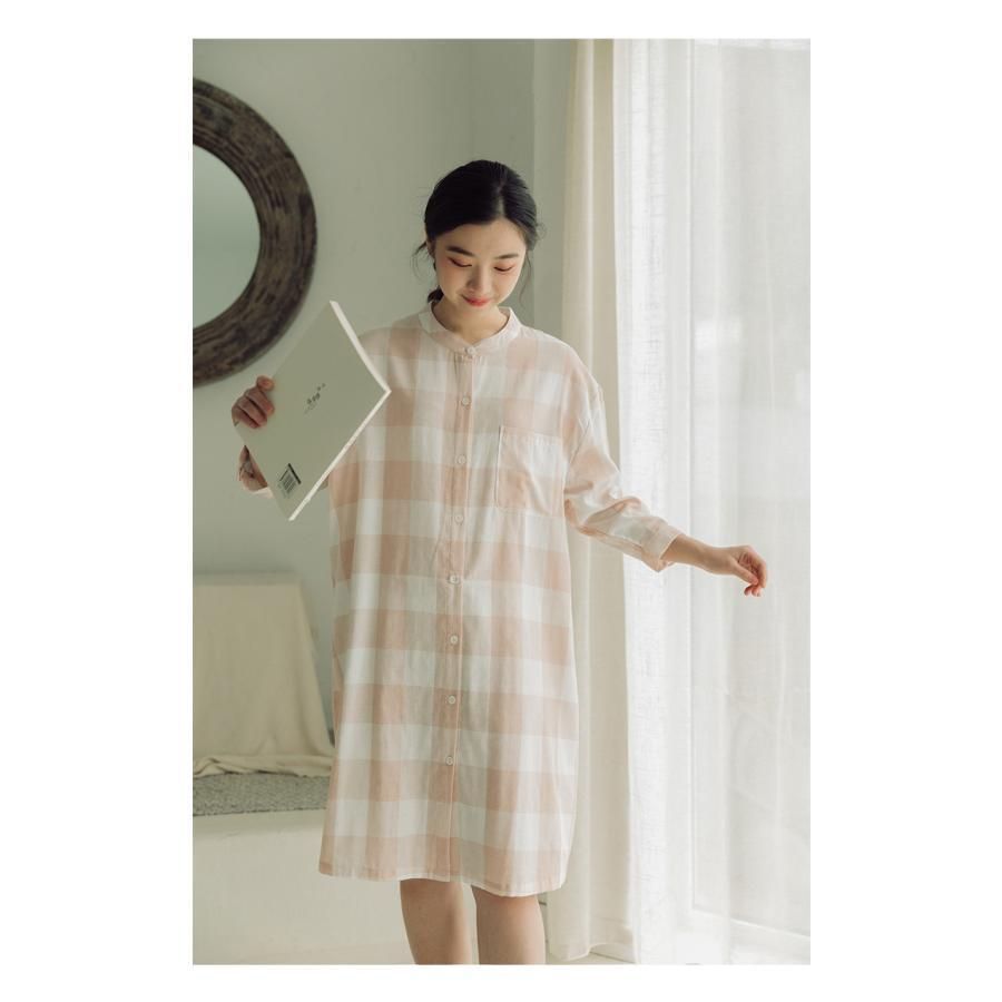 年中使える 七分袖 コットン100% ダブルガーゼ ワンピースパジャマ 綿100% レディース 前開き 授乳 入院時 マタニティ 母 女性 寝間着 BLACKFEMALETHERAPIST_ORG