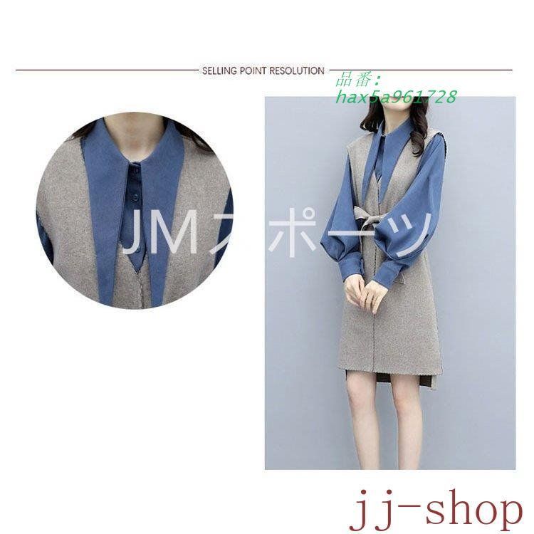 セットアップ レディース ワンピース 長袖 秋冬 ニット ロングワンピース Vネック 着痩せ セーター トップス 上下セット 通勤 kni4a304345