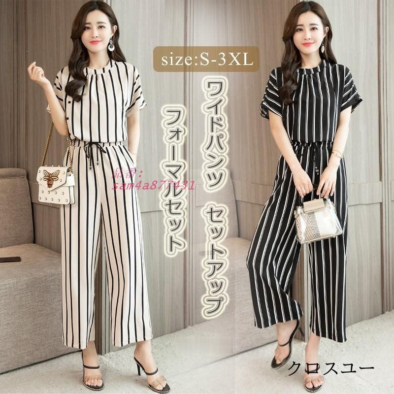セットアップ レディース ワイドパンツ 夏 ブラウス 半袖 9分丈 40代 ガウチョパンツ ストライプ ゆったり 2点セット ウエストゴム am4a877431の検索結果