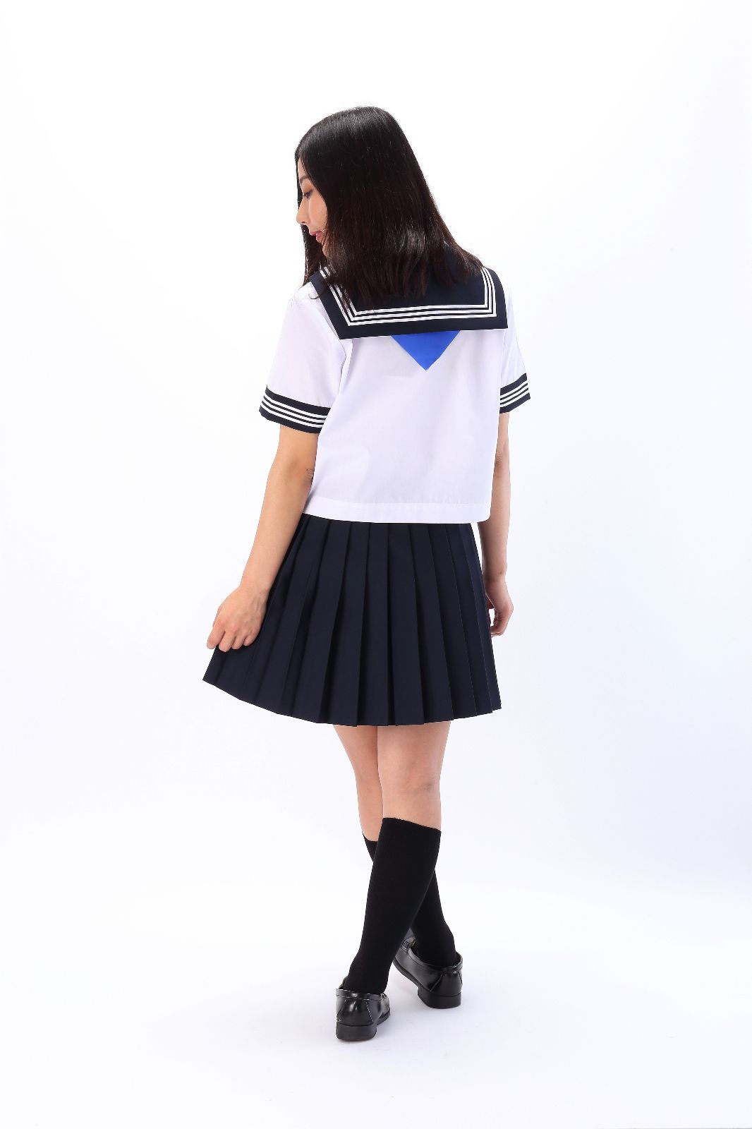 場面を選ばない本物のセーラー服 夏服 白シャツ生地 前開 半袖 カフスなし 通学用 制服 礼服 結婚式 葬儀 遊び着 私服校の日常通学用に