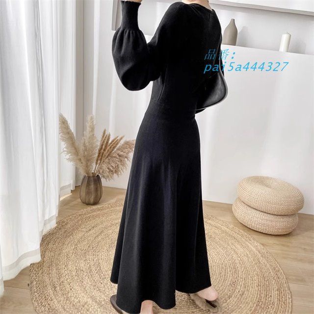 ニットワンピース レディース 40代 きれいめ 膝丈ワンピース 秋冬 Aラインスカート パフスリーブ 長袖ワンピース 黒ニット オシャレ韓国風 大人ゆったり kni4a267960