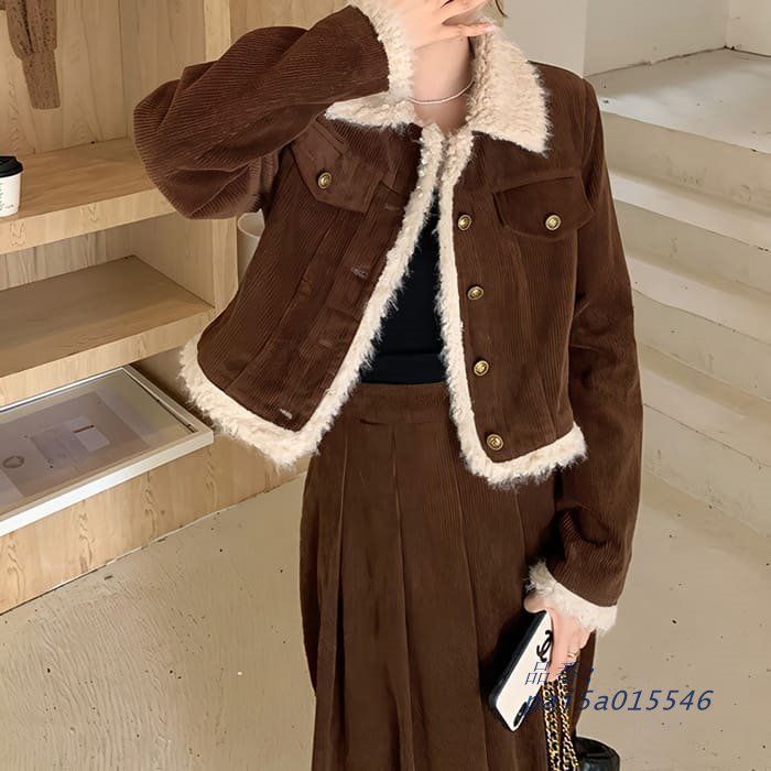 中学生 高校生 韓国 コーデュロイ セットアップ ボア ガー 2点セット カジュアル スカート おしゃれ 20代 10代 秋春冬 長袖 ジャケット pai5a015546 BLACKFEMALETHERAPIST_ORG
