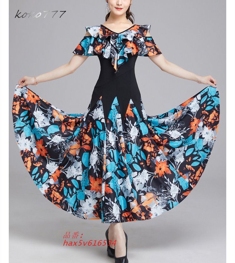 ロングドレス レディース ワンピース ラテンダンス 柄物 パーティー 舞台衣装 発表会 コスチューム 洋服 ワルツ 社交ダンス モダンダンス ナショナルダンス hax5v616534 BLACKFEMALETHERAPIST_ORG