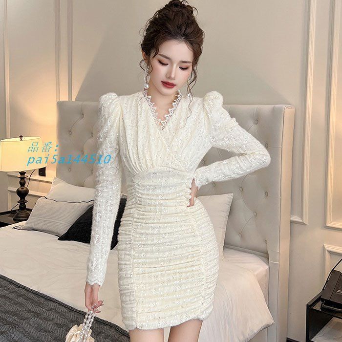 シースルーレース襟 パフスリーブ長袖 ショートタイトワンピース ベージュ キャバ スナック 韓国 レディース 服 ドレス pai5a144510の検索結果