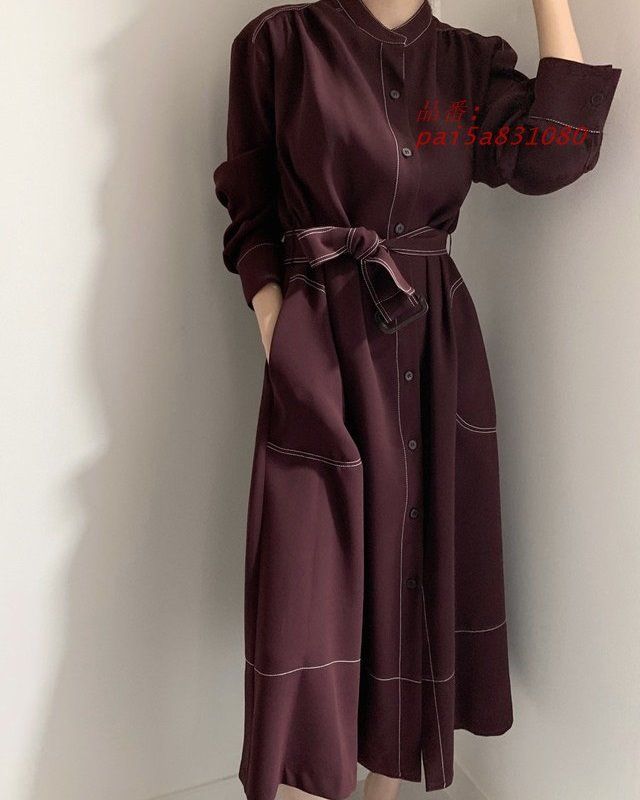 ワンピース 長袖 ジャケット ロング ミモレ丈 スタンドワンピース 春 ワンピースコート 無地 きれいめ 春 シンプル ベルト付き 秋 pai5a831080 BLACKFEMALETHERAPIST_ORG