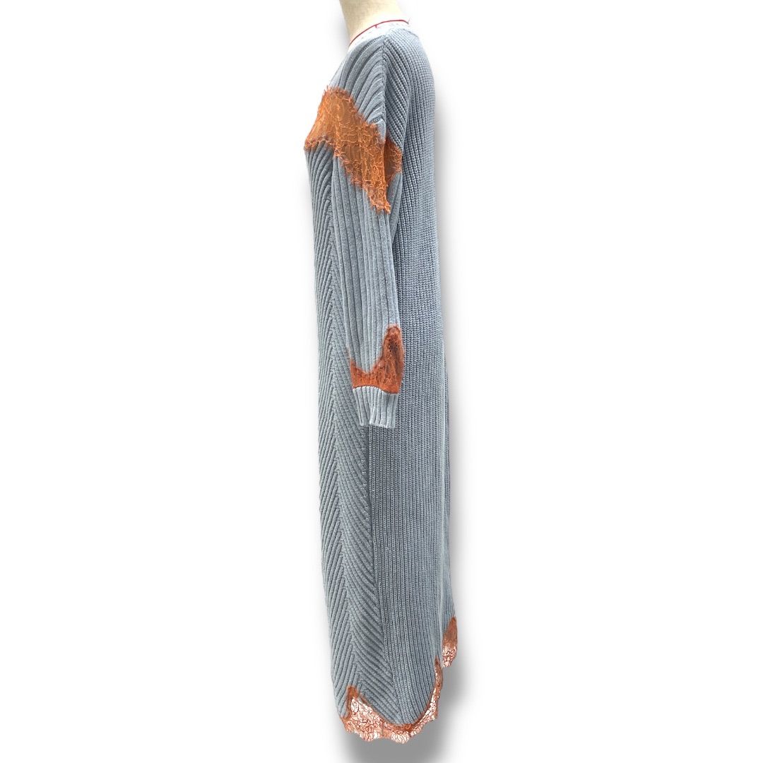GRACE CONTINENTAL グレースコンチネンタル レース切替ニットワンピース ロング セーター 長袖 編み込み 01201 33079-00 青 ブルー オレンジ 36サイズ レディース 秋 冬 ゴーゴー古着久喜倉庫店 No.1276 BLACKFEMALETHERAPIST_ORG