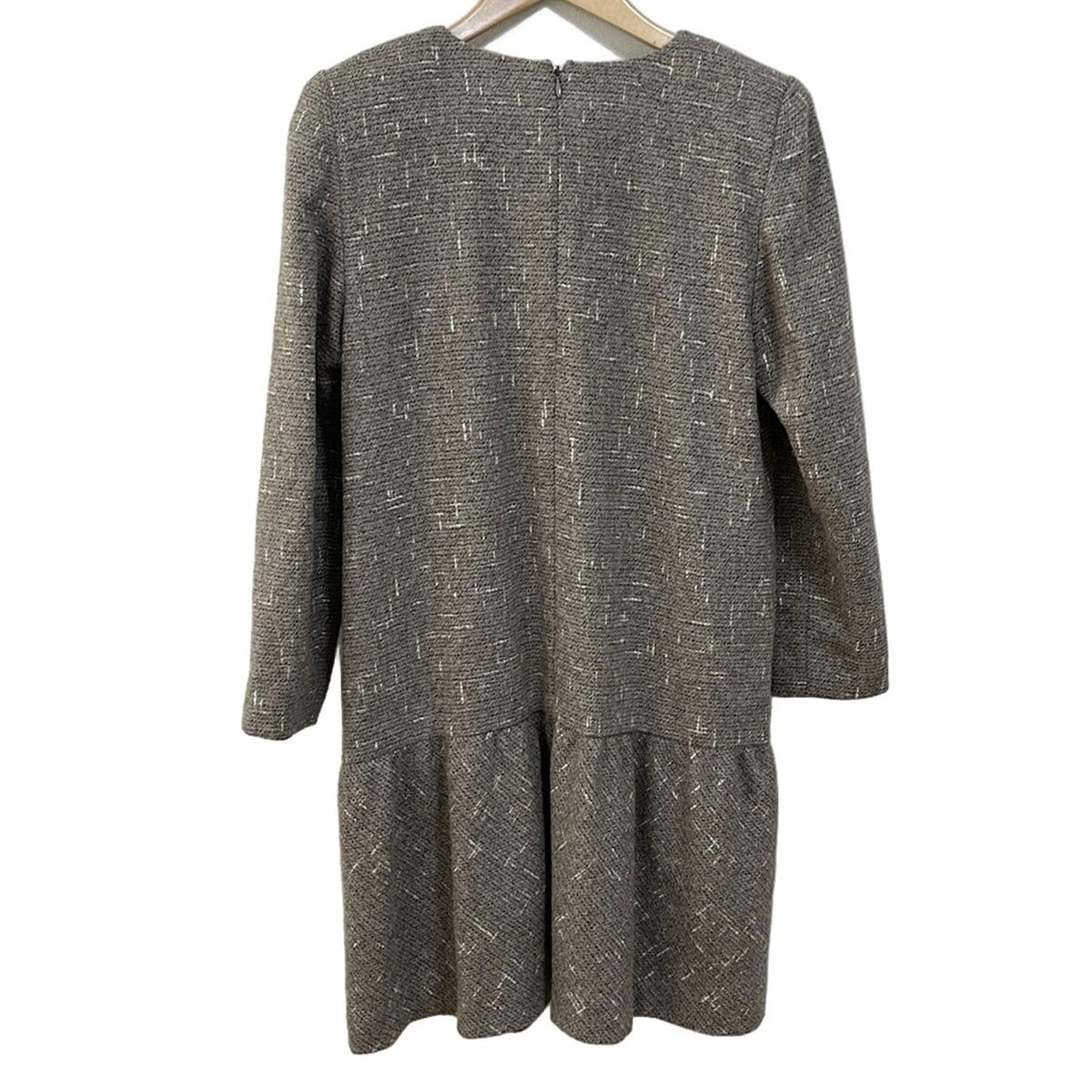 FOXEY フォクシー ワンピース サイズ38 M レディース - グレーベージュ×アイボリー クルーネック 長袖 ひざ丈 BLACKFEMALETHERAPIST_ORG