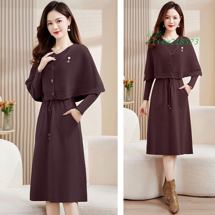 カーディガン風ケープ付き 膝丈長袖ニットワンピース 赤 カーキ 茶 カジュアル デート 韓国 レディース 服装 vii4w218523の検索結果