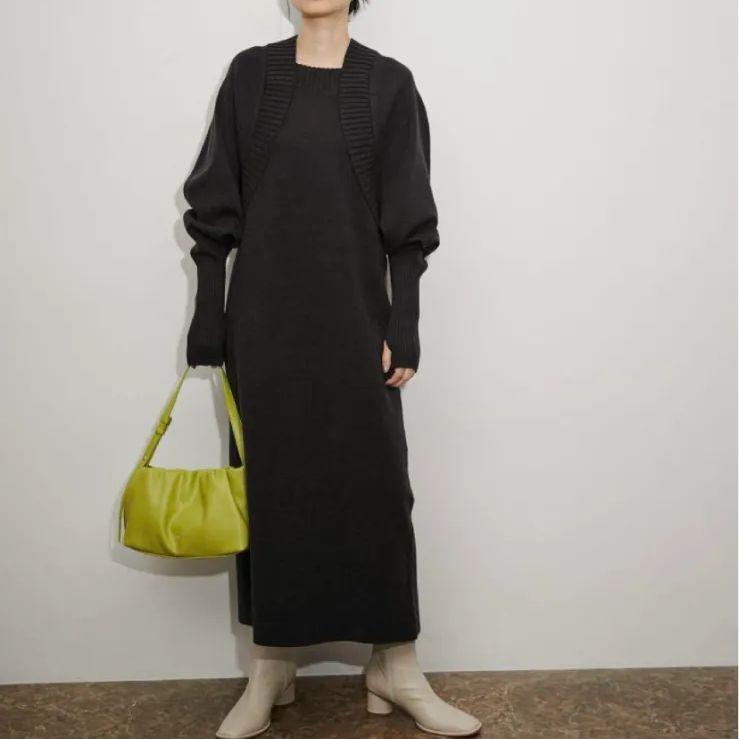 アダムエロペ サステナブル ボレロドッキングニットワンピース 定価¥16 500 チャコールグレーの検索結果