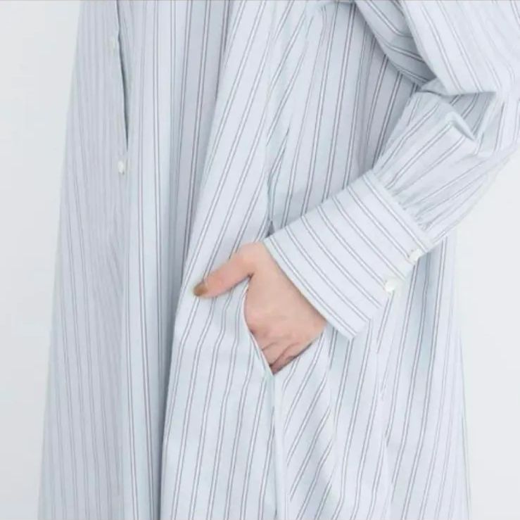 NE QUITTEZ PAS VOILE STRIPE DRESS インド綿 シャツ サイドスリット ワンピース ライトブルー アイボリー レディース ヌキテパ 5-0905M