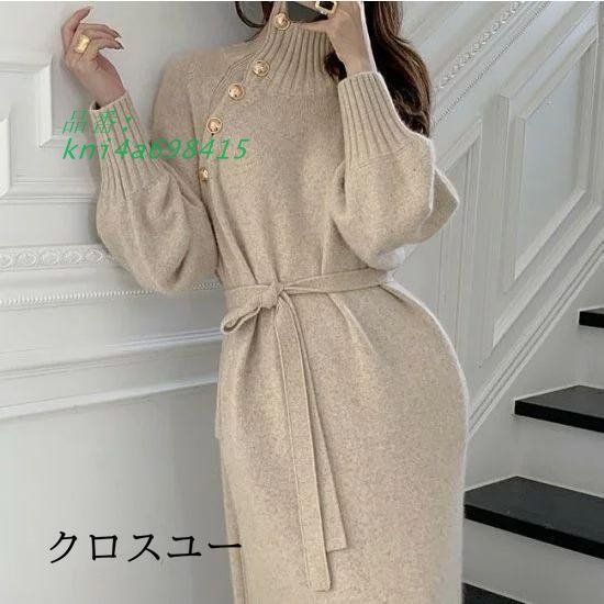 ニットワンピース 冬 ロング タイト 大きいサイズ 秋冬 女子会 ハイネック 体型カバー ゆったり デート ボタンスリット 大人かわいい ウエストリボン kni4a698415の検索結果