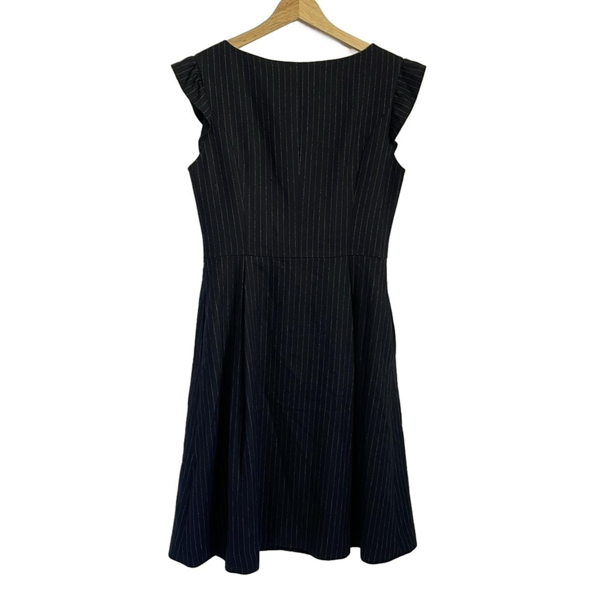 Rene ルネ ワンピース サイズ36 S レディース - ダークネイビー×グレー ノースリーブ ひざ丈 ボーダー ストライプ フリル BLACKFEMALETHERAPIST_ORG