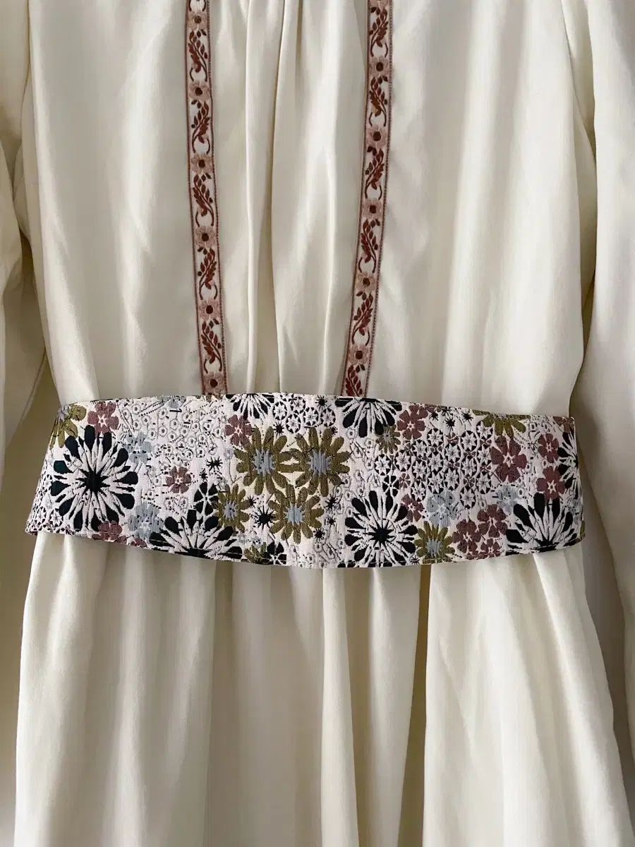 FRAY I.D フレイアイディー ワンピース サイズ1 S レディース - 白×カーキ 半袖 マキシ丈 花柄 フリル プリーツ
